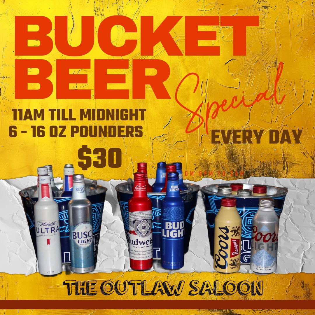 - Thursday 6 PM-12 AM: $18 12oz Domestic Bottles Beer Bucket
